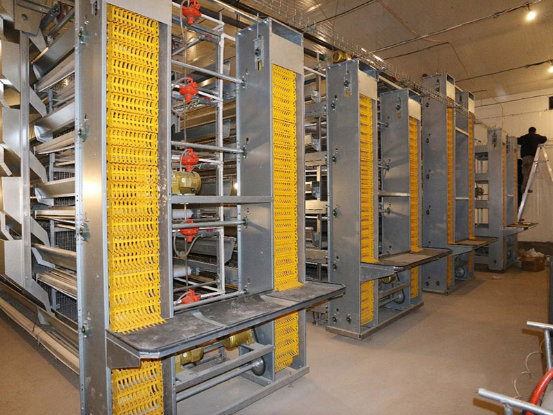 Автоматическая система поднятия несушек типа H, включая клетку и раму, автоматическое кормление, поение, сбор яиц, очистку навоза и системы контроля температуры.