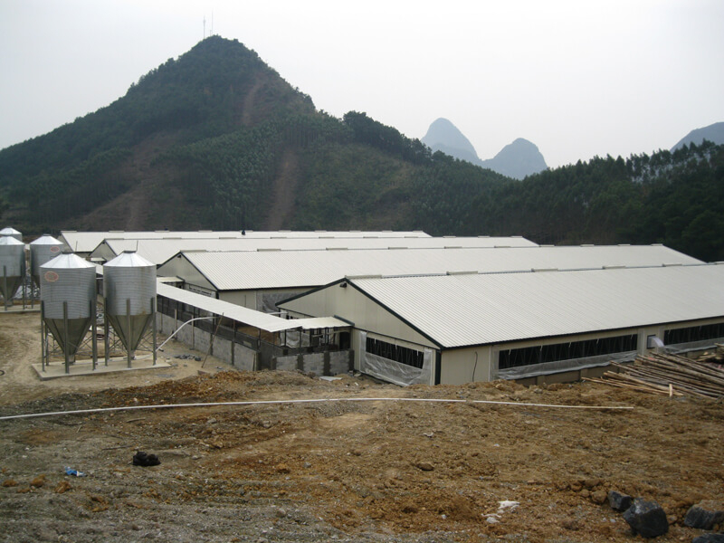 2. Стальной каркас свинарника : стальная ферма и колонна, правая сторона с горячеоцинкованным покрытием 600 мг, оцинкованный прогон крыши: Z 100*40*20*2,0 и стеновой прогон: C 160x50x20x2,0.